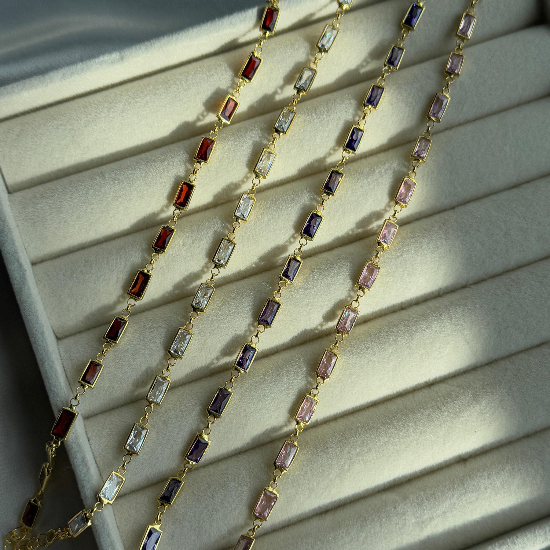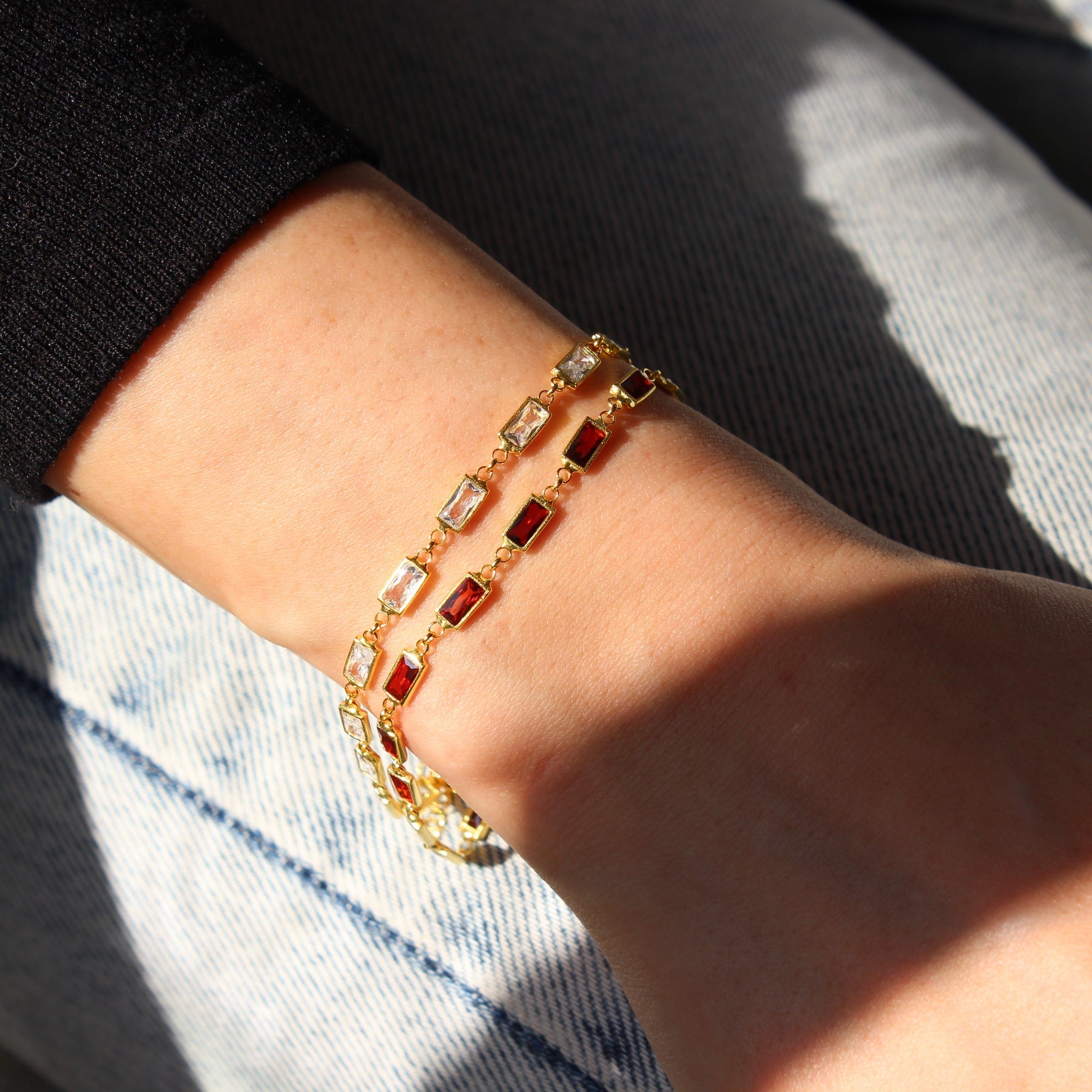925 Sølv| Farverigt Rektangulært Baguette Armbånd