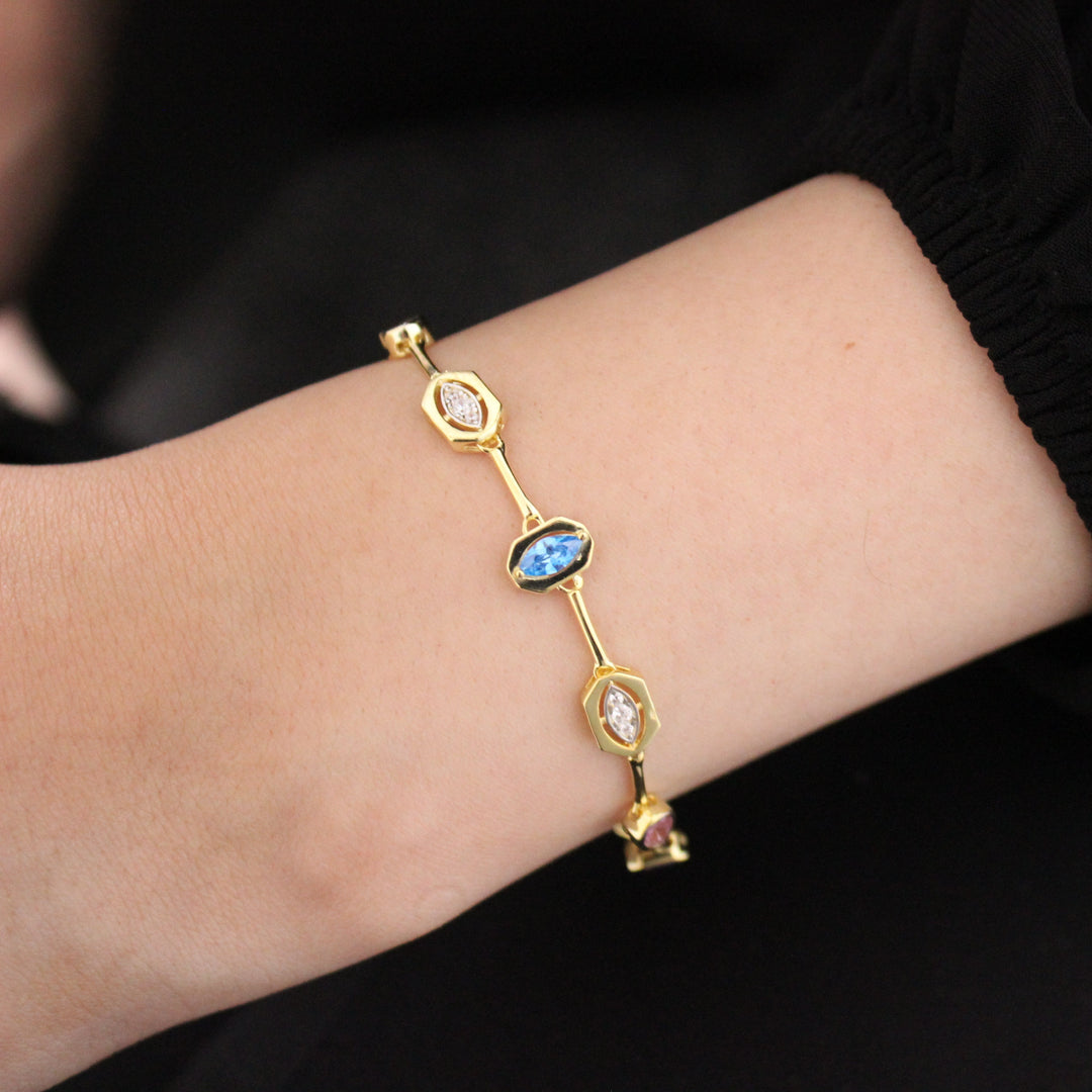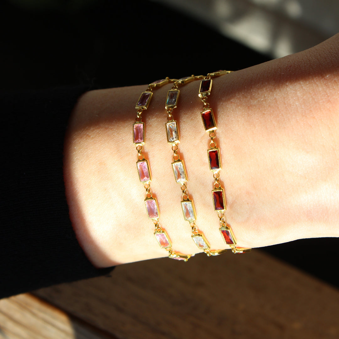 925 Sølv| Farverigt Rektangulært Baguette Armbånd