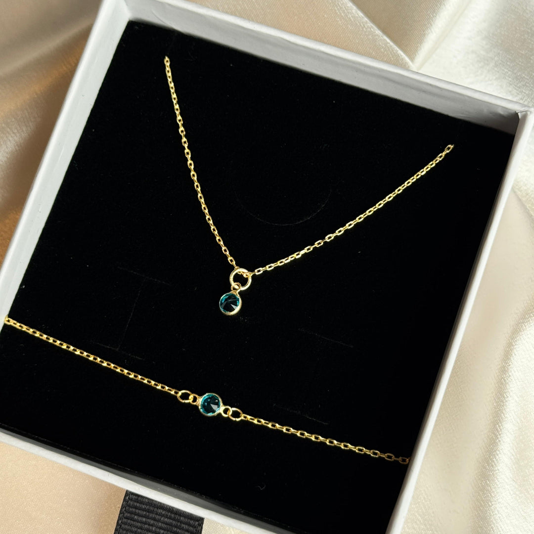 925 Sølv| Fødselssten Halskæde Og Armbånd Sæt