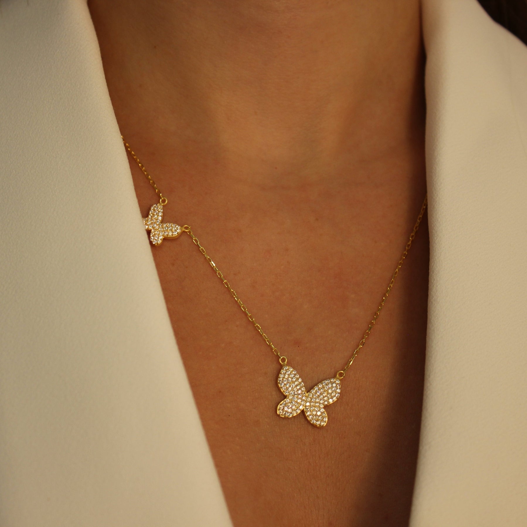 925 Sølv| Fuld Zircon Stone Double Butterfly Halskæde