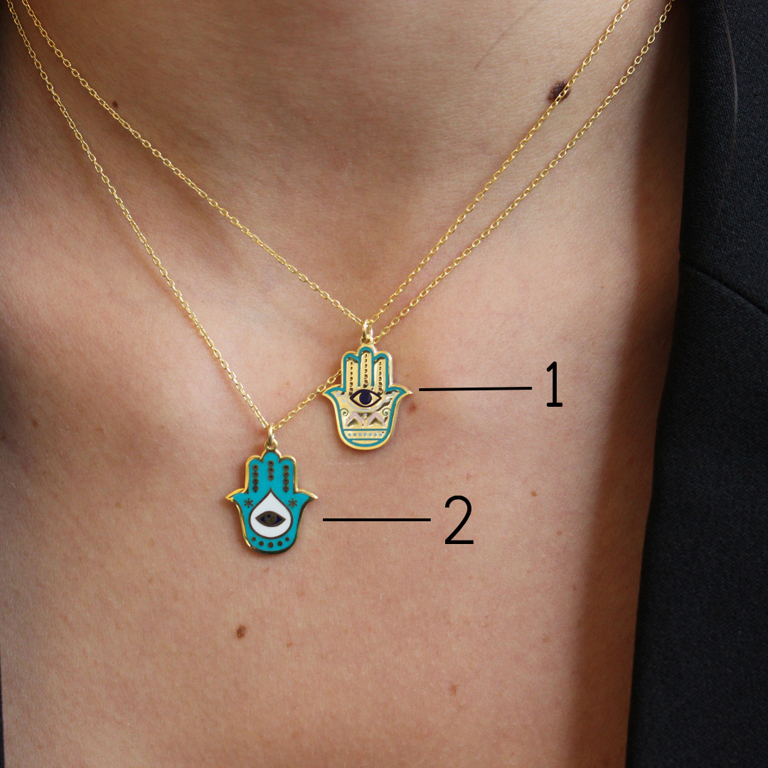 925 Sølv| Turkis Emalje Hamsa Halskæde