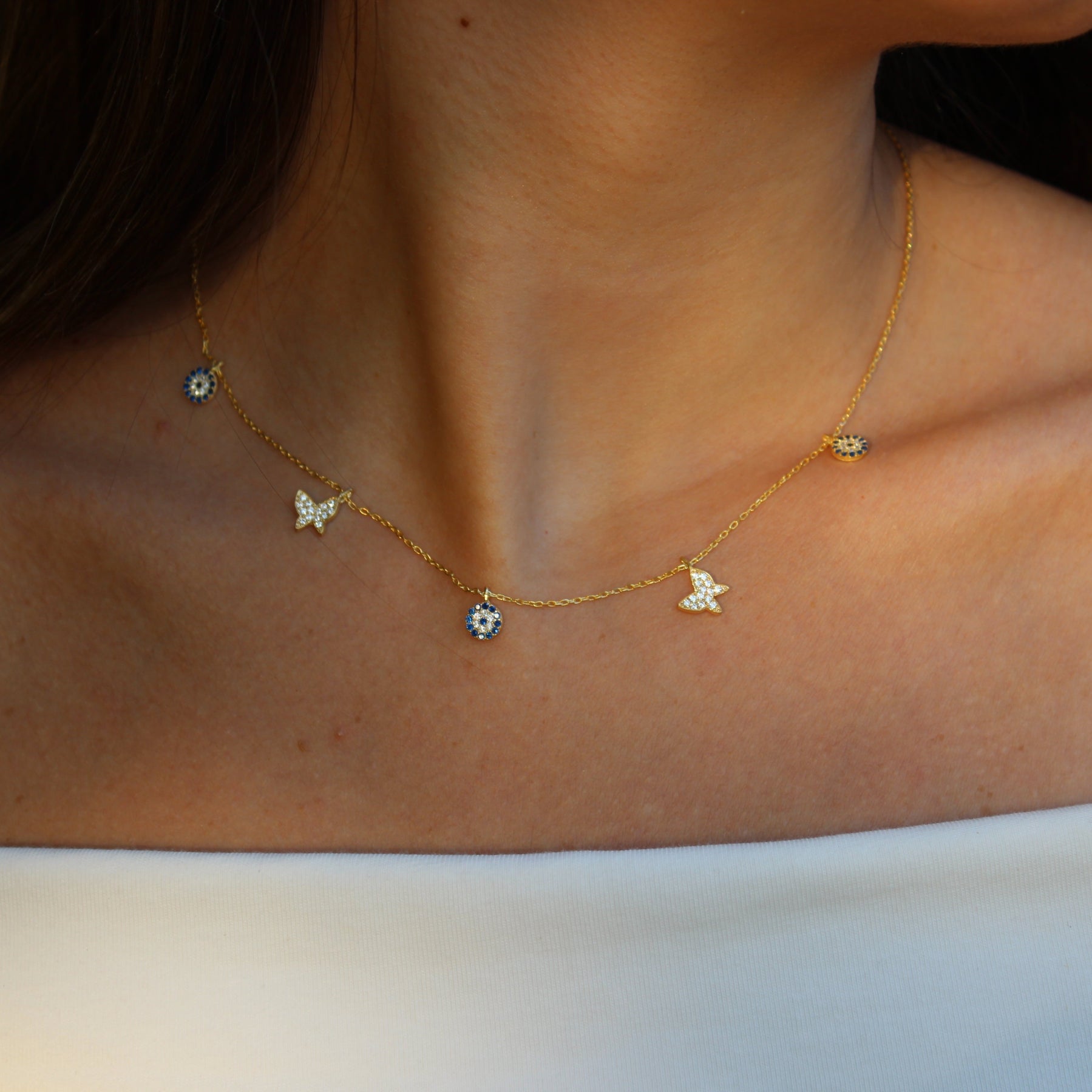 925 Sølv| Evil Eye X Butterfly Halskæde