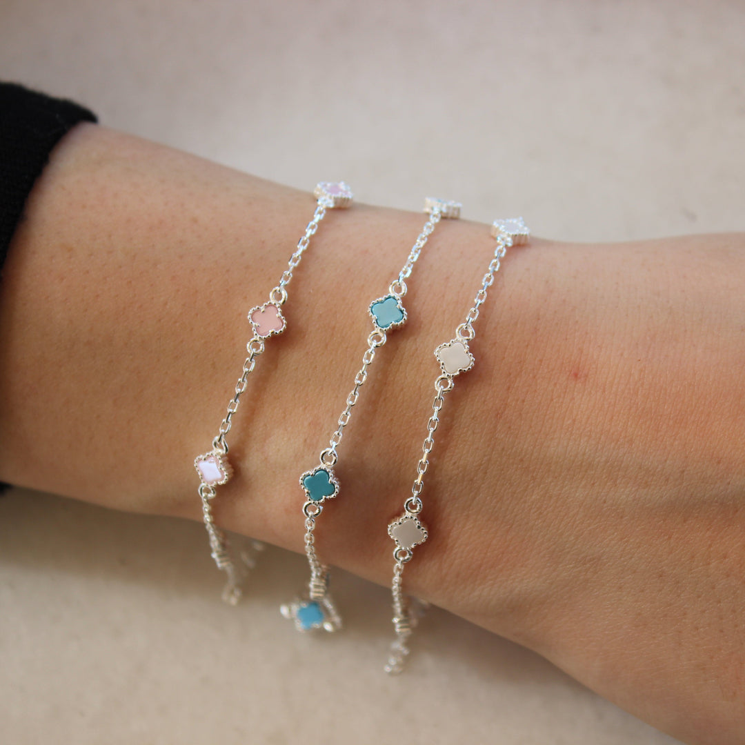 925 Sølv| Mini Farverigt Kløverarmbånd