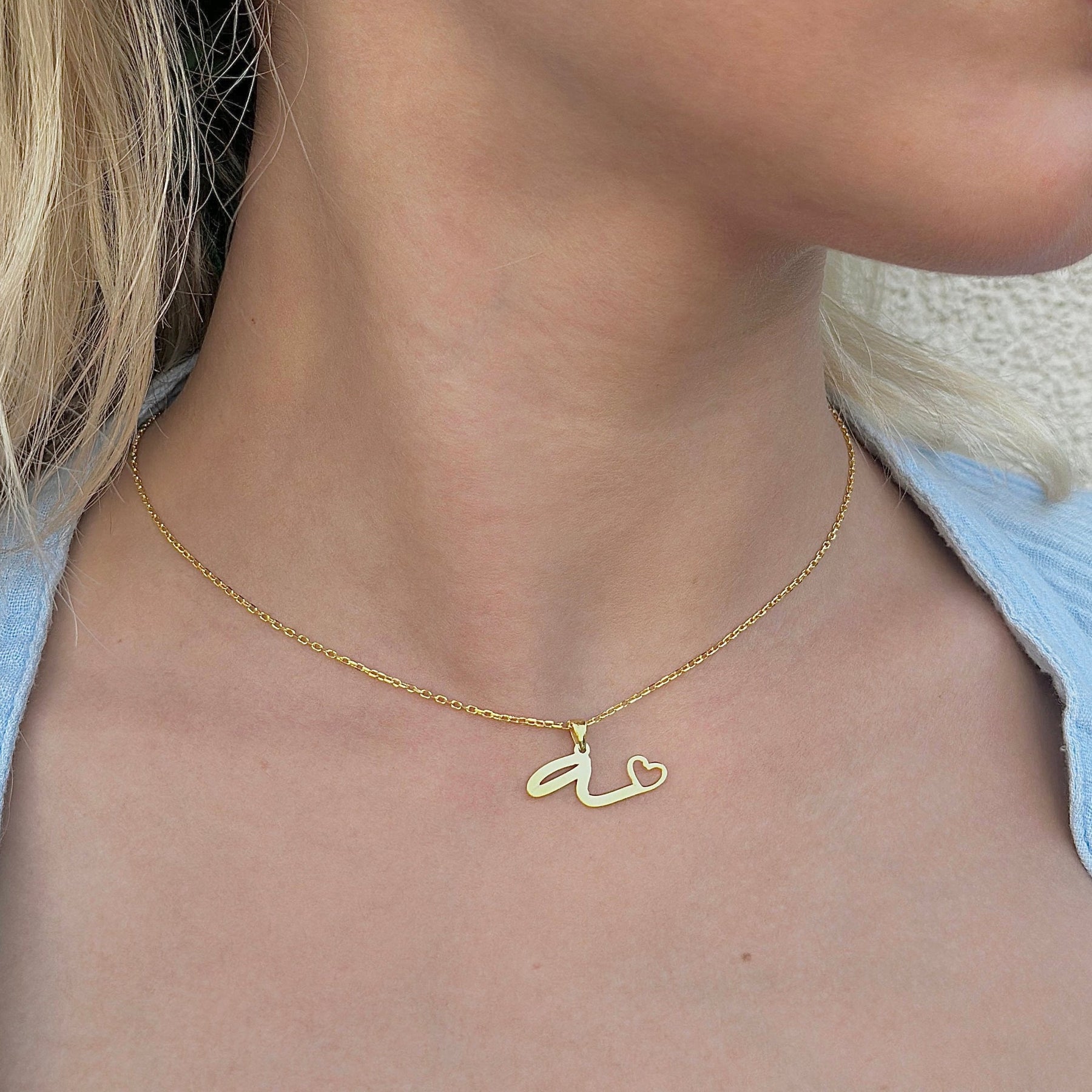 925 Sølv| Hjertehalskæde Med Lille Bogstav