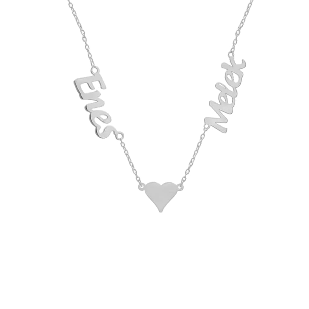 925 Sølv| To Navne Hjerte Halskæde