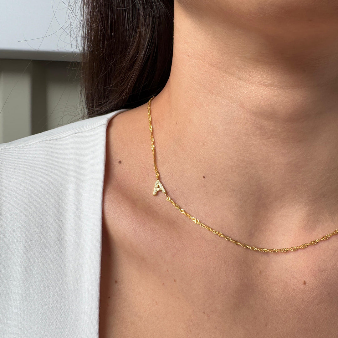 925 Sølv| Kraveben Zirkon Bogstav Halskæde