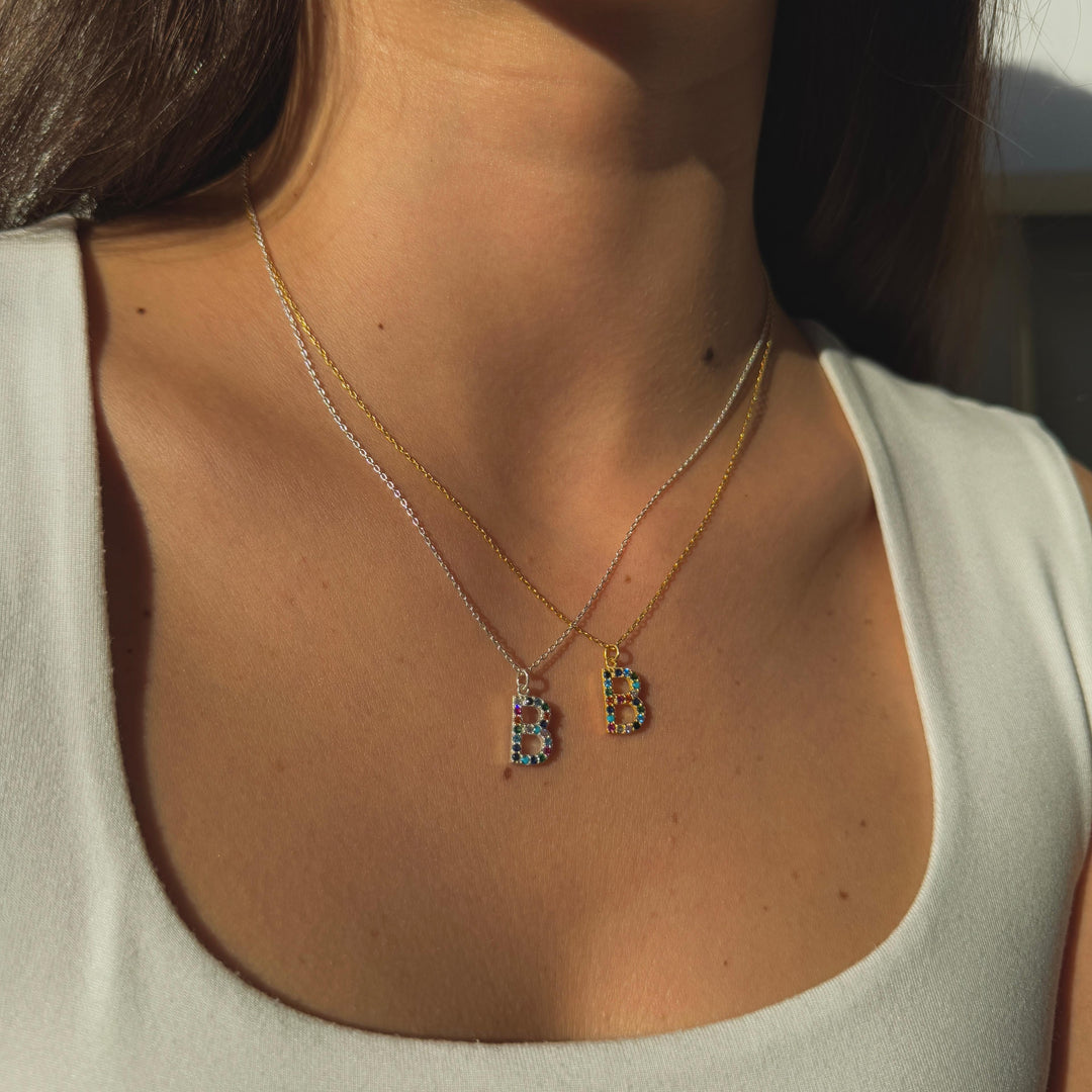 925 Sølv| Farvede Sten Bogstav Halskæde