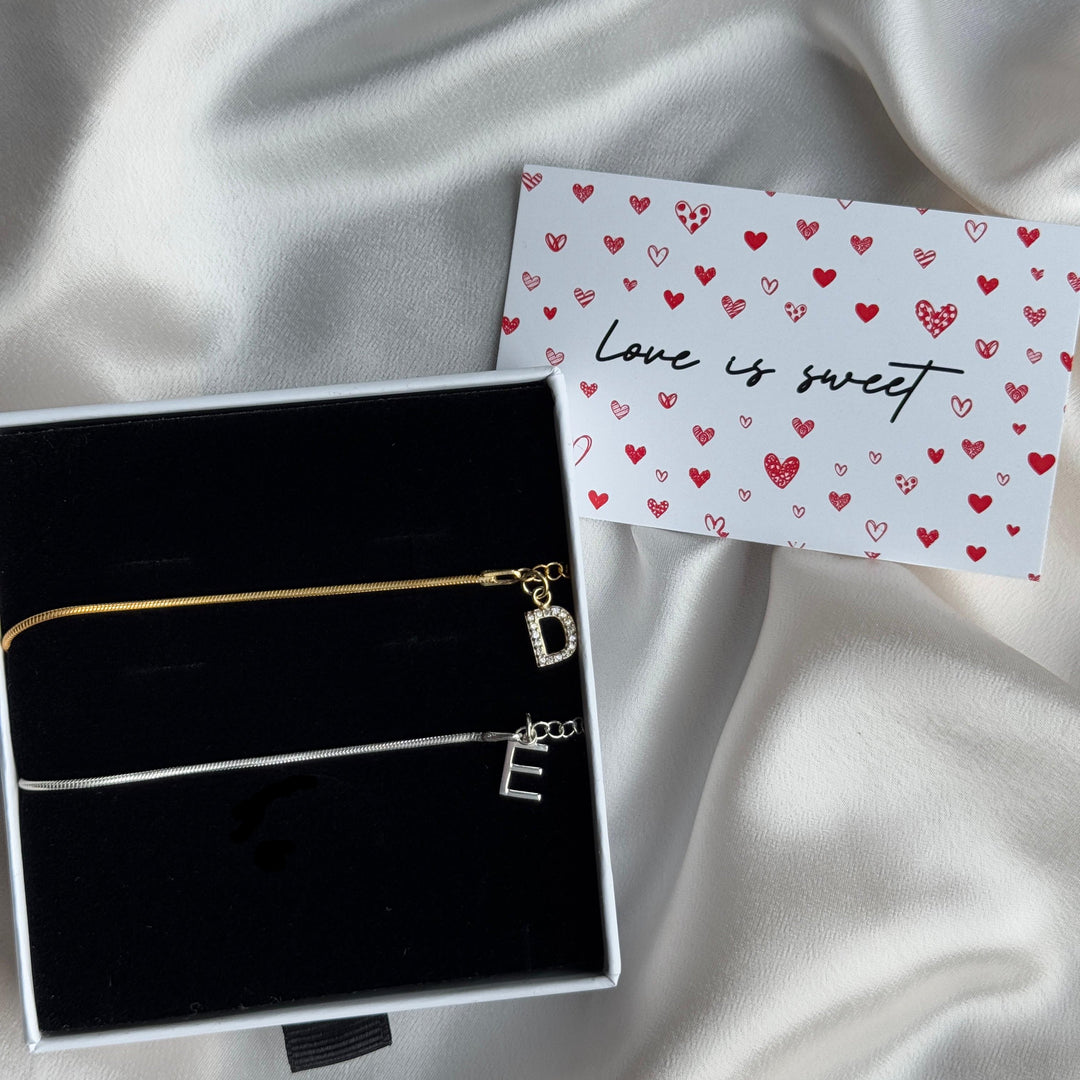 925 Sølv| Hjertehalskæde Med Lille Bogstav