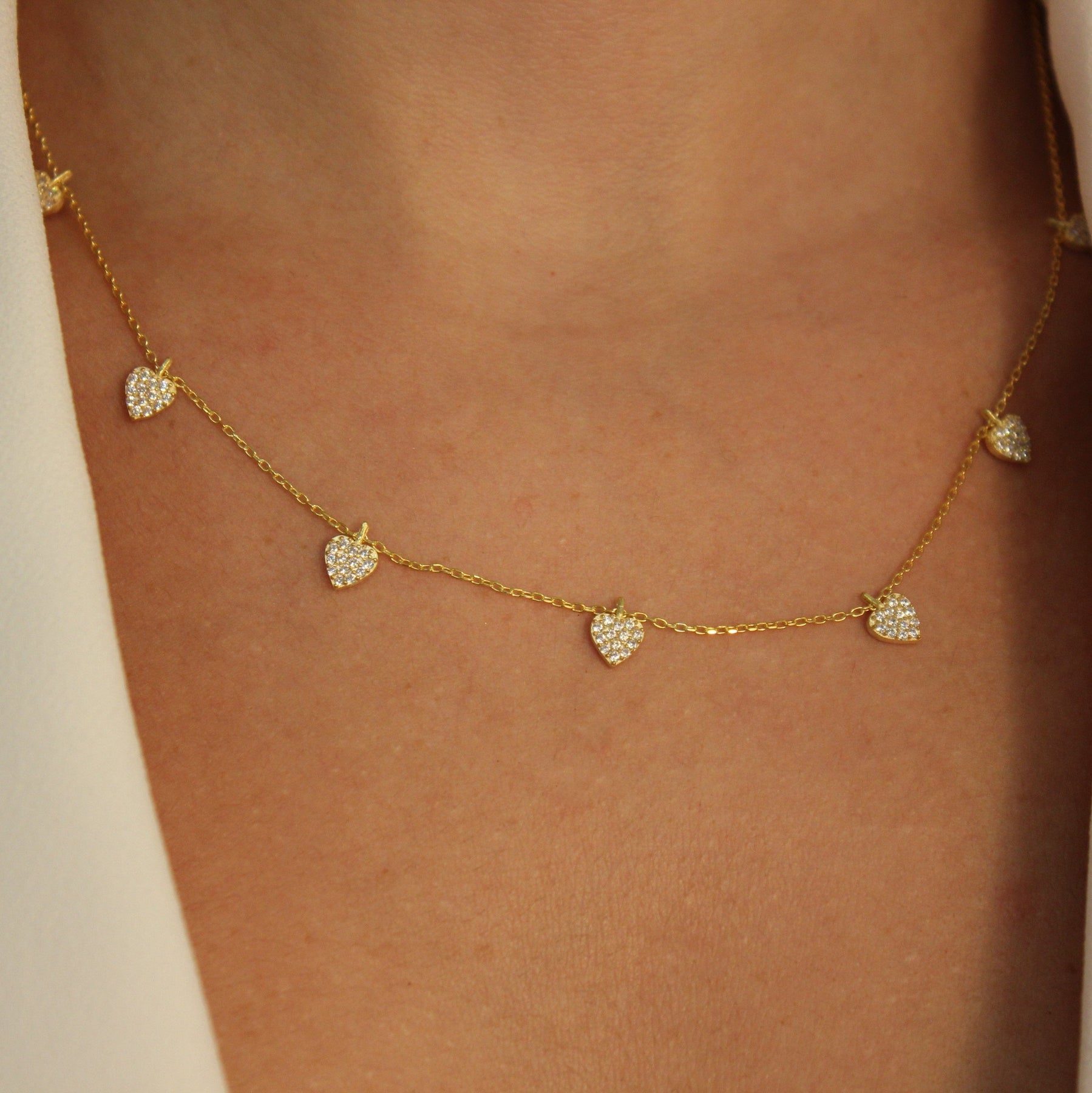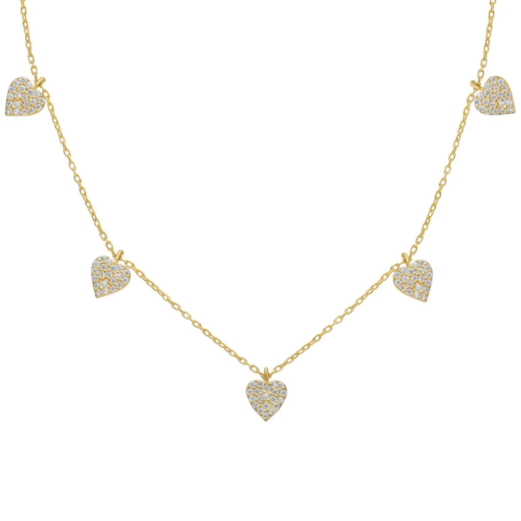 925 Sølv| 5-Delt Zirkon Hjerte Halskæde